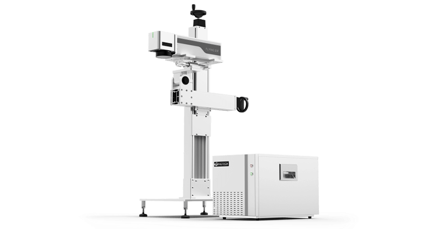 The online fiber laser marking machine can make dot matrix or scribbling laser encoding with high quality on fast moving products.